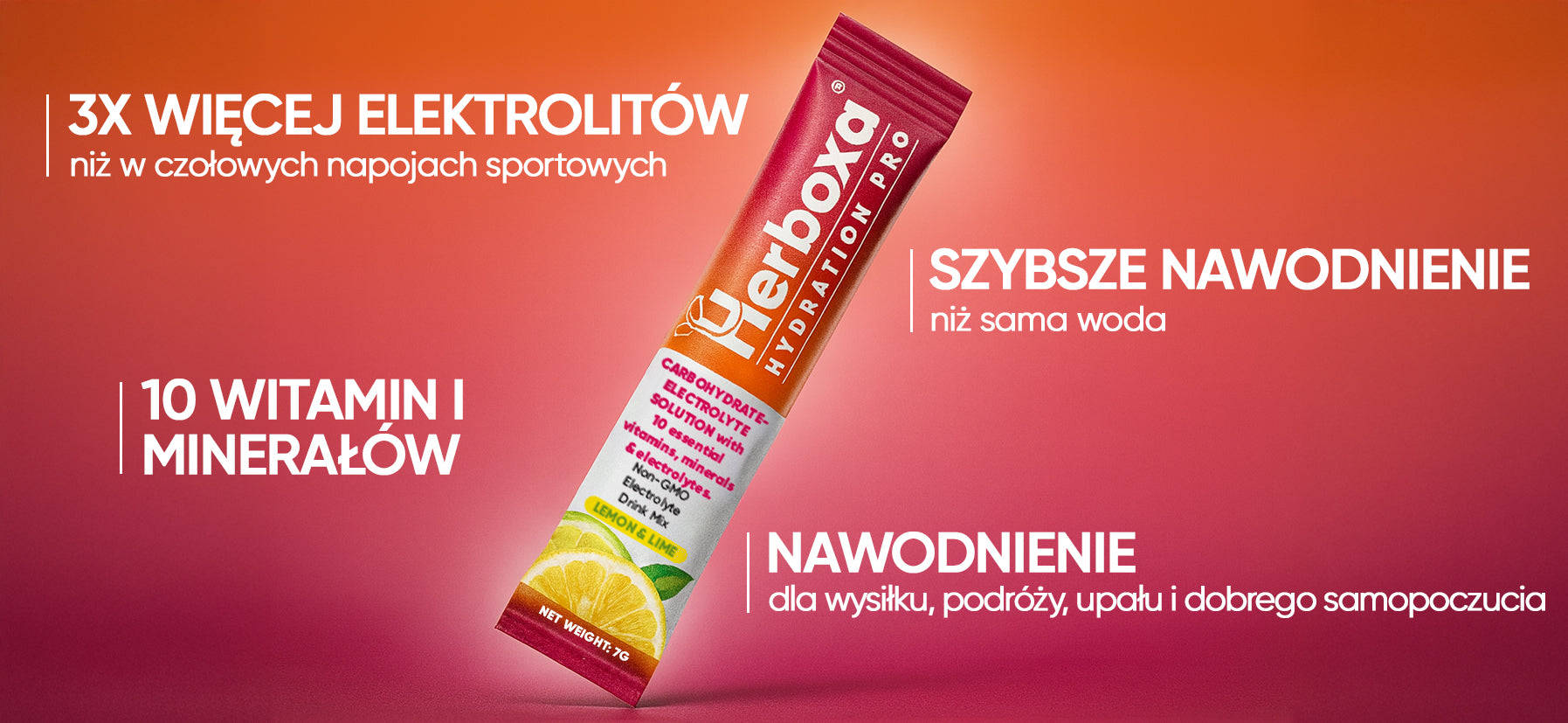 Herboxa® Hydration Pro to zbilansowana mieszanka elektrolitów oraz szybko przyswajalnych węglowodanów, która pomaga Twojemu organizmowi nawodnić się skuteczniej niż w przypadku samego picia wody.