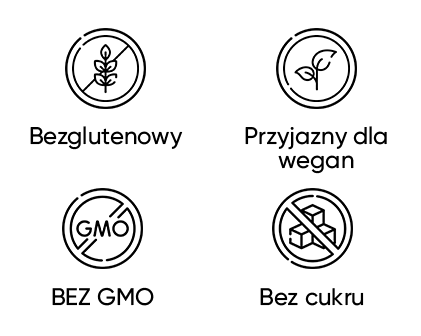 Bez dodatku cukru, wypełniaczy, barwników, GMO, glutenu, soi, nabiału, metali ciężkich i innych niepotrzebnych składników.